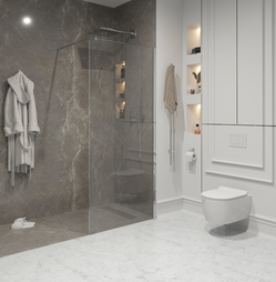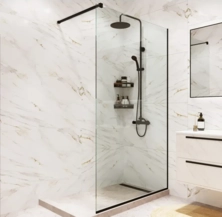Материал: закаленное неосветленное стекло AGC premium 8мм, что обеспечивает ударопрочность и безопасность водоотталкивающим покрытием.
